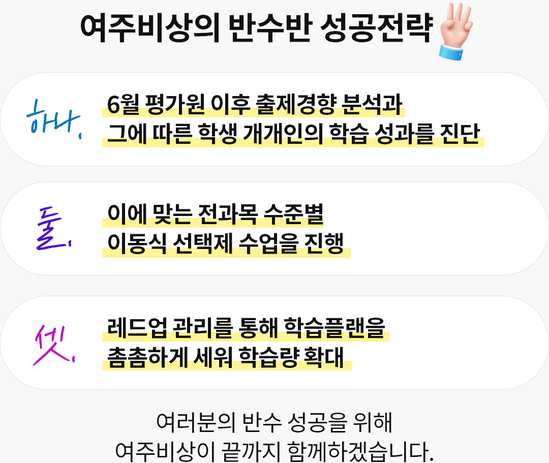 따라서 여주비상은 타 학원과 다르게 반수반을 운영합니다.